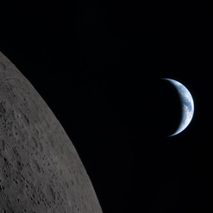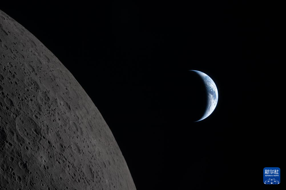 这是从执行“阿耳忒弥斯2号”载人绕月飞行测试任务的“猎户座”飞船上拍摄的月球(左)和地球(4月6日摄)。