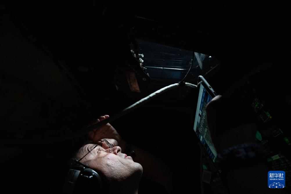 4月6日,美国航空航天局宇航员里德·怀斯曼在执行“阿耳忒弥斯2号”载人绕月飞行测试任务的“猎户座”飞船上观察窗外。