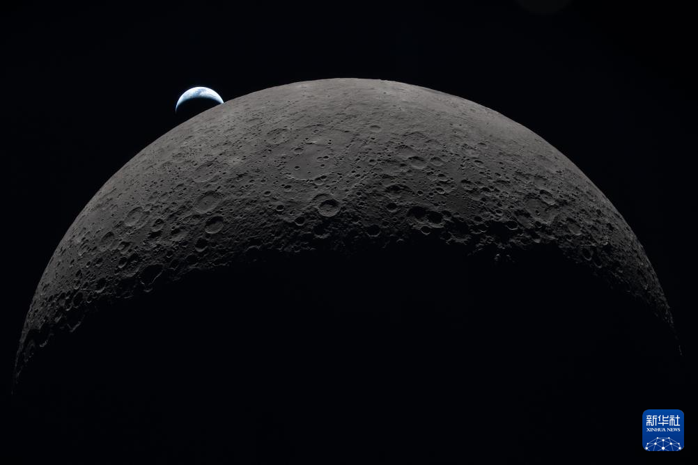 这是从执行“阿耳忒弥斯2号”载人绕月飞行测试任务的“猎户座”飞船上拍摄的地落(4月6日摄)。