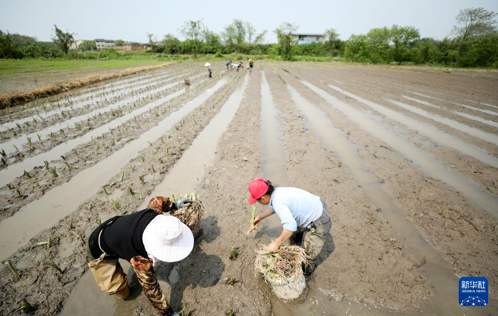 4月9日,在湖南省资兴市唐洞街道香花村香芋种植基地,农户在种植香芋。