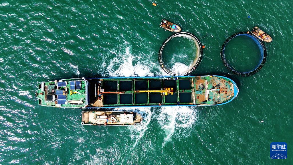 4月10日,山东青岛西海岸新区鲁海丰海洋牧场2026年首批10万尾鱼苗投入深水网箱进行养殖。据悉,青岛鲁海丰海洋牧场地处国家一类水质海域,水温适宜、盐度均衡,比较适宜海鱼生长。