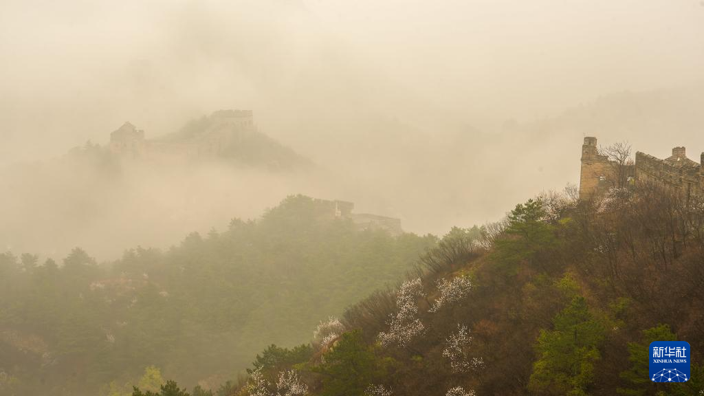 这是4月9日在河北省承德市滦平县拍摄的雨后金山岭长城。