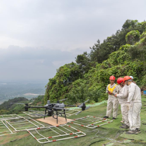 以往,无人机跨江放线需要高空作业人员手动解绑导引绳。而此次大载重无人机搭载四段投掷器飞抵塔基上空后,只需数十秒就可完成自动抛投导引绳,提升了作业安全性和效率。