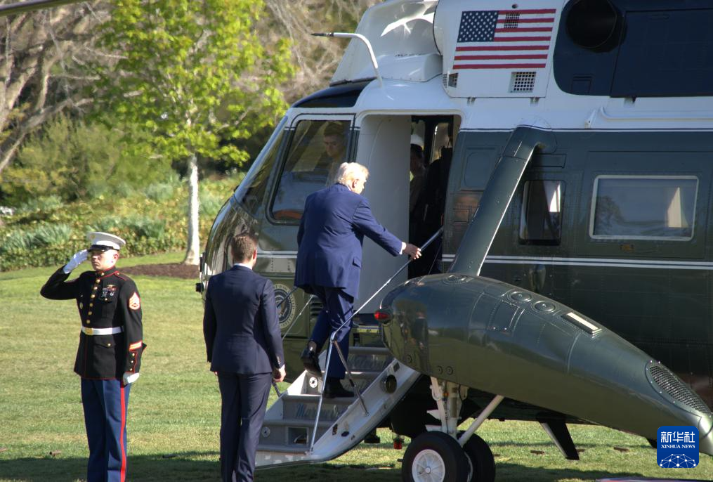 4月10日,美国总统特朗普准备乘直升机离开华盛顿白宫。