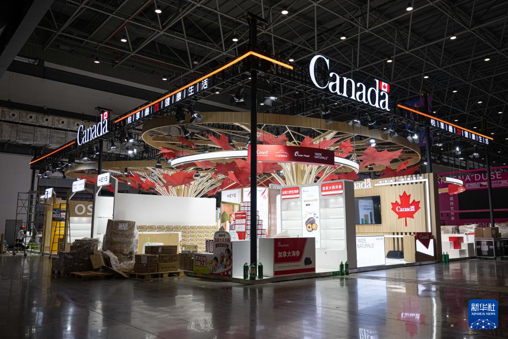 4月10日在第六届消博会主会场拍摄的布展中的加拿大国家馆。加拿大担任本届消博会主宾国。