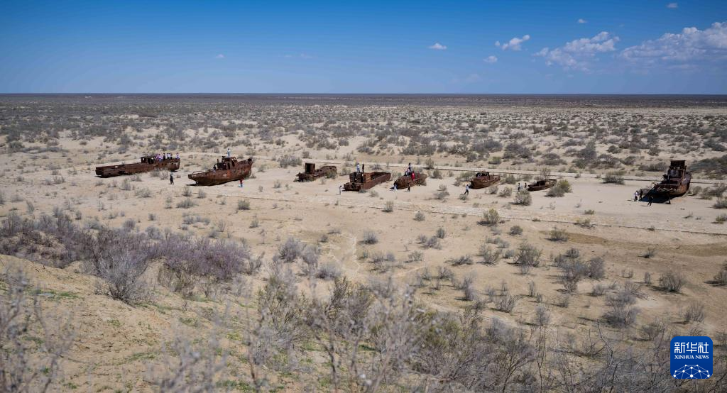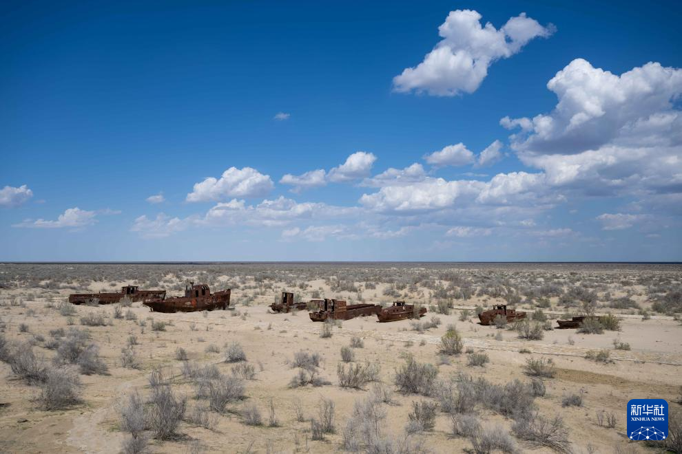 咸海处于亚欧大陆腹地,地跨哈萨克斯坦和乌兹别克斯坦两国,曾是世界第四大湖泊。自20世纪60年代以来,在人类活动用水激增和气候变化等多重因素影响下,咸海快速萎缩,面积已缩小90%以上,湖岸线严重后退,土壤盐碱度升高,干涸的湖床上形成了面积5万多平方公里的荒漠,咸海成为令人痛惜的“中亚之泪”。