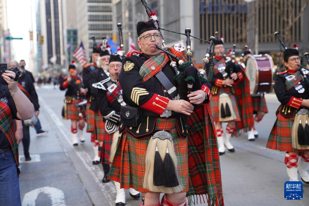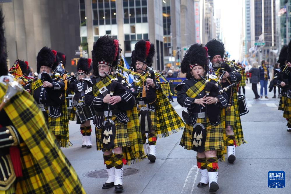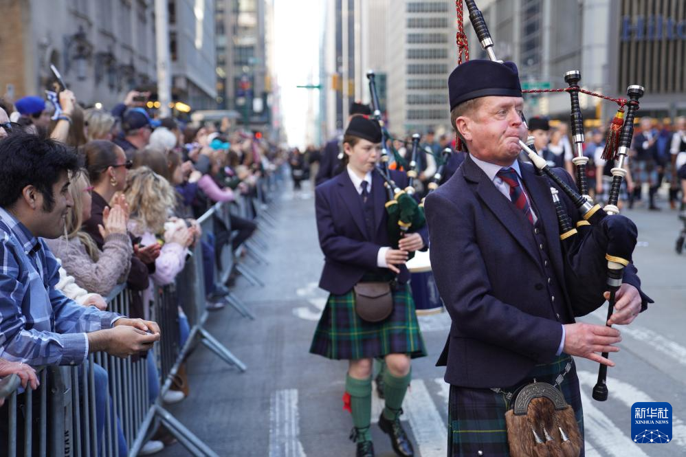 4月11日,美国纽约举行巡游庆祝苏格兰格纹日,数千参与者身穿苏格兰格纹裙,在街头演奏风笛、表演舞蹈,吸引大量观众前来观看。
