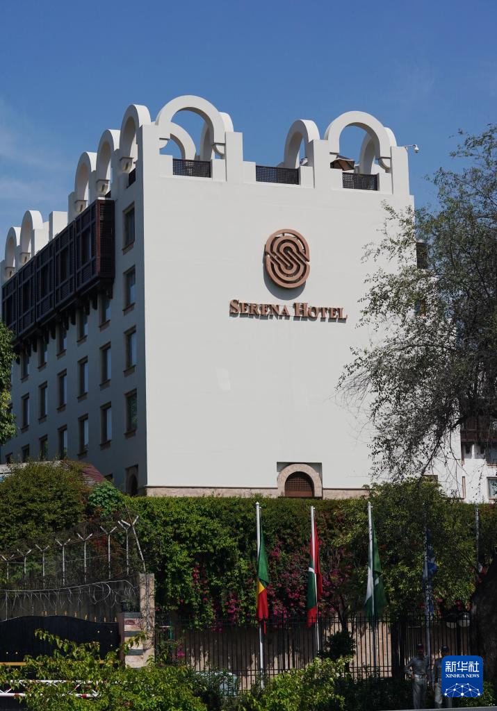 这是4月10日在巴基斯坦首都伊斯兰堡拍摄的谈判举行地点塞雷纳酒店外景。