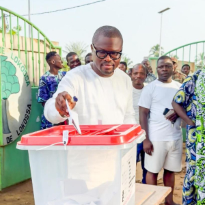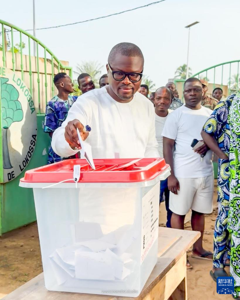 这是4月12日罗穆亚尔德·瓦达尼在贝宁洛科萨市的一处投票站参加总统选举投票。