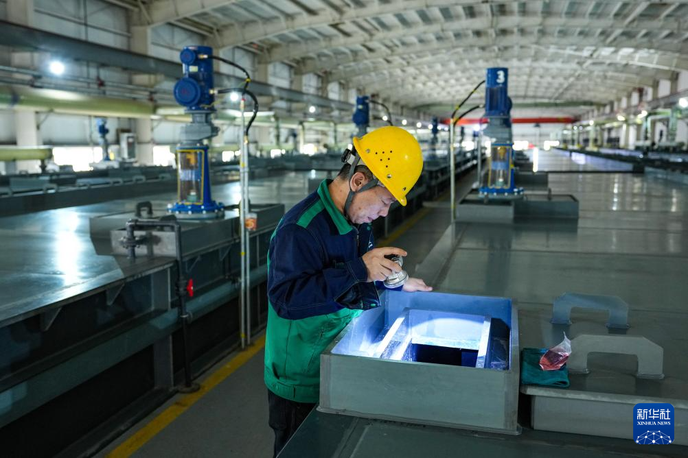 4月13日,在金昌高能环境技术有限公司贵金属车间蒸钌生产线上,工作人员进行钌蒸馏提纯作业。