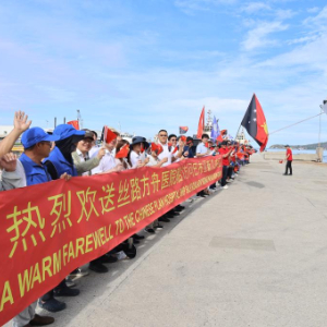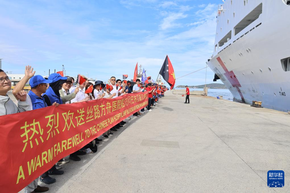 中国海军“丝路方舟”号医院船4月15日结束对巴布亚新几内亚的友好访问与医疗服务,驶离莫尔兹比港起程回国。巴新是“丝路方舟”号医院船执行“和谐使命-2025”任务的最后一站。访问巴新期间,医院船接诊5635人次,实施手术操作361例,收治住院16人。