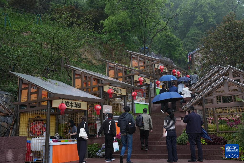 4月15日,游客在温州园博园省市城市展园重庆园参观。