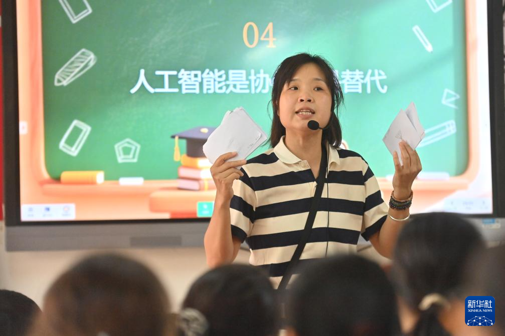 4月16日,广西梧州市长洲区组织一批老师来到倒水镇大桥小学,开展送教下乡活动,帮助乡村小学学生了解非遗和科技知识。