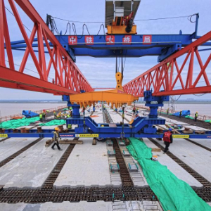 崇启公铁长江大桥是沪渝蓉高铁沪宁段关键控制性工程,全长4.09公里,横跨长江入海口北支航道,采用双层公铁两用无砟轨道斜拉桥的设计,上层为设计时速100公里的双向六车道一级公路,下层为设计时速350公里的双线高速铁路及设计时速250公里的双线城际铁路,主通航孔跨径达400米。目前大桥主跨钢梁4个节段等待吊装,预计5月下旬完成大桥合龙。