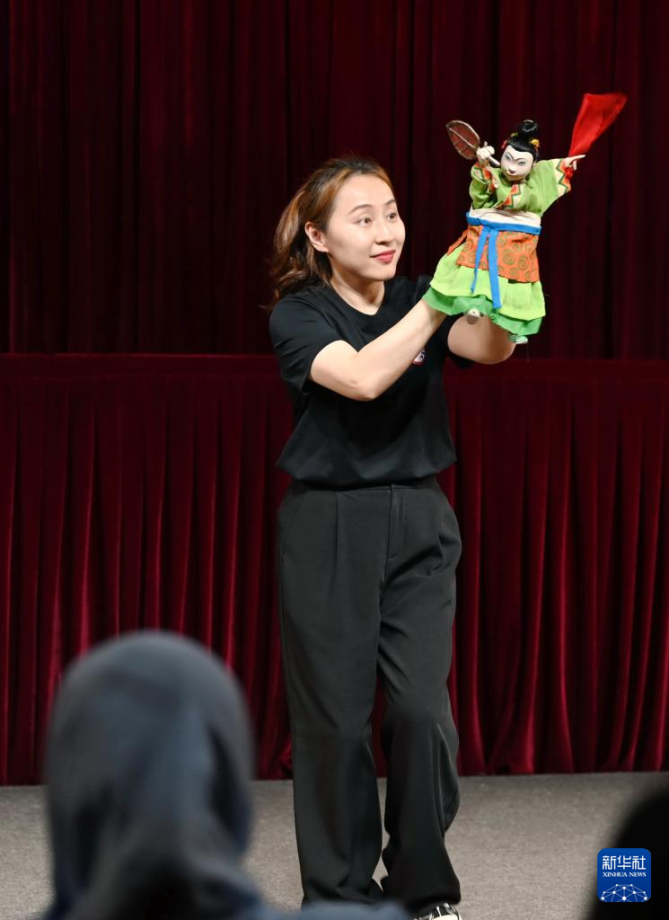 4月16日,表演者为阿拉伯艺术家展示漳州布袋木偶戏表演技艺。