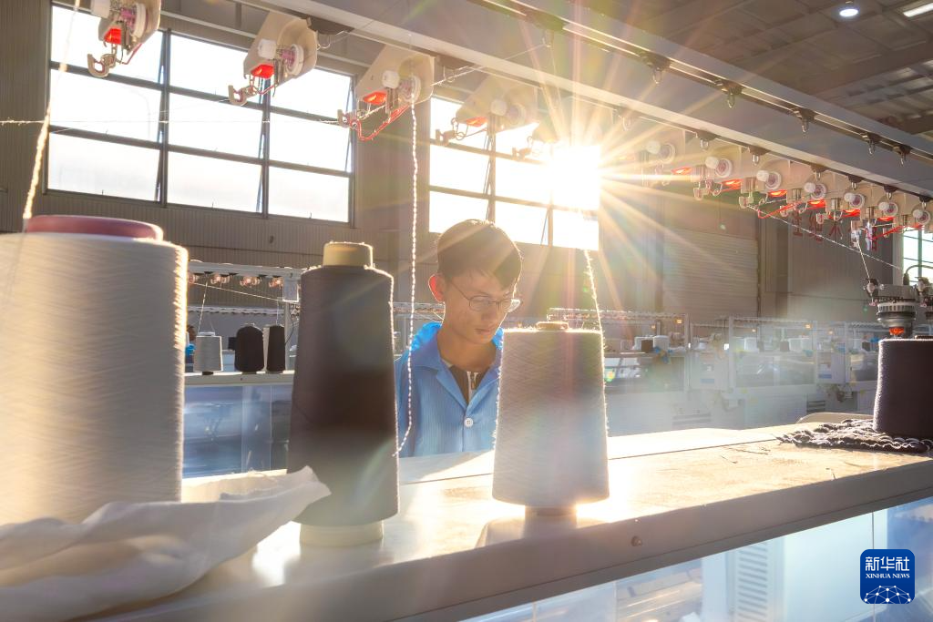 4月17日,在毕节高新技术产业开发区一家纺织企业内,机器开足马力全力生产。