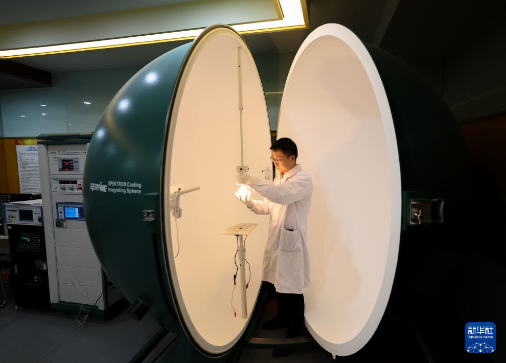 4月17日,技术员在贵州省毕节高新技术产业开发区的一家光学技术企业内对灯具光度性能进行检测。