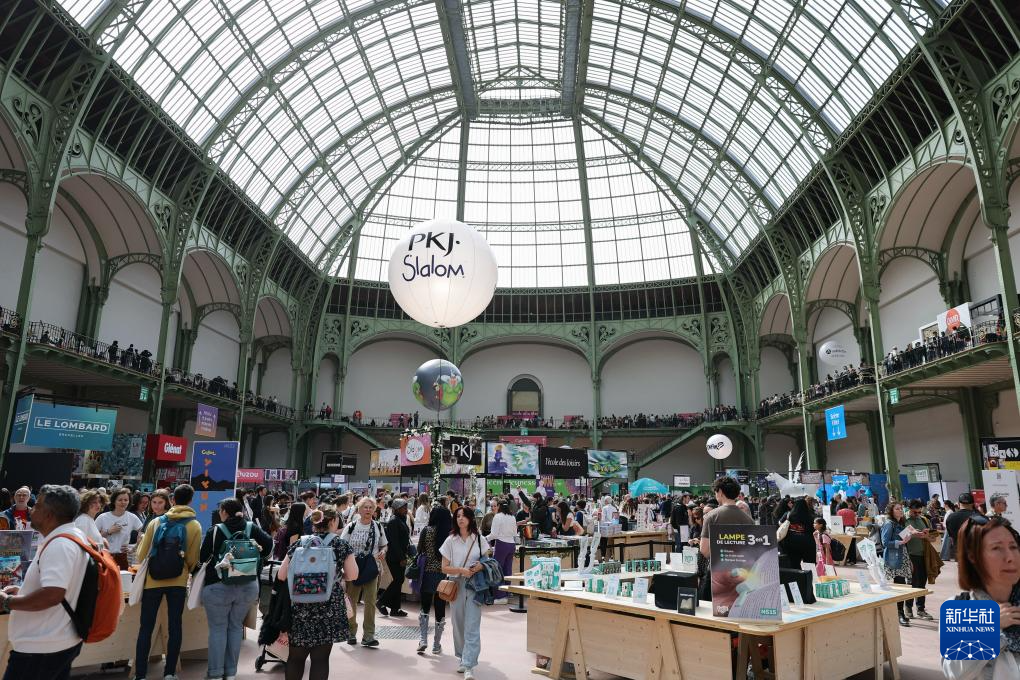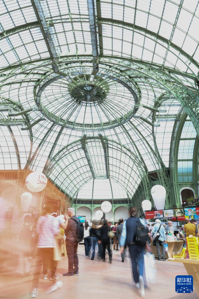 4月17日,人们在法国巴黎大皇宫参观巴黎图书节。