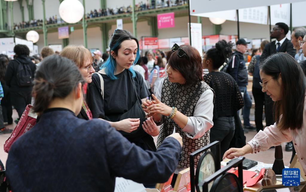 4月17日,在法国巴黎,人们在巴黎图书节中国展台参观。