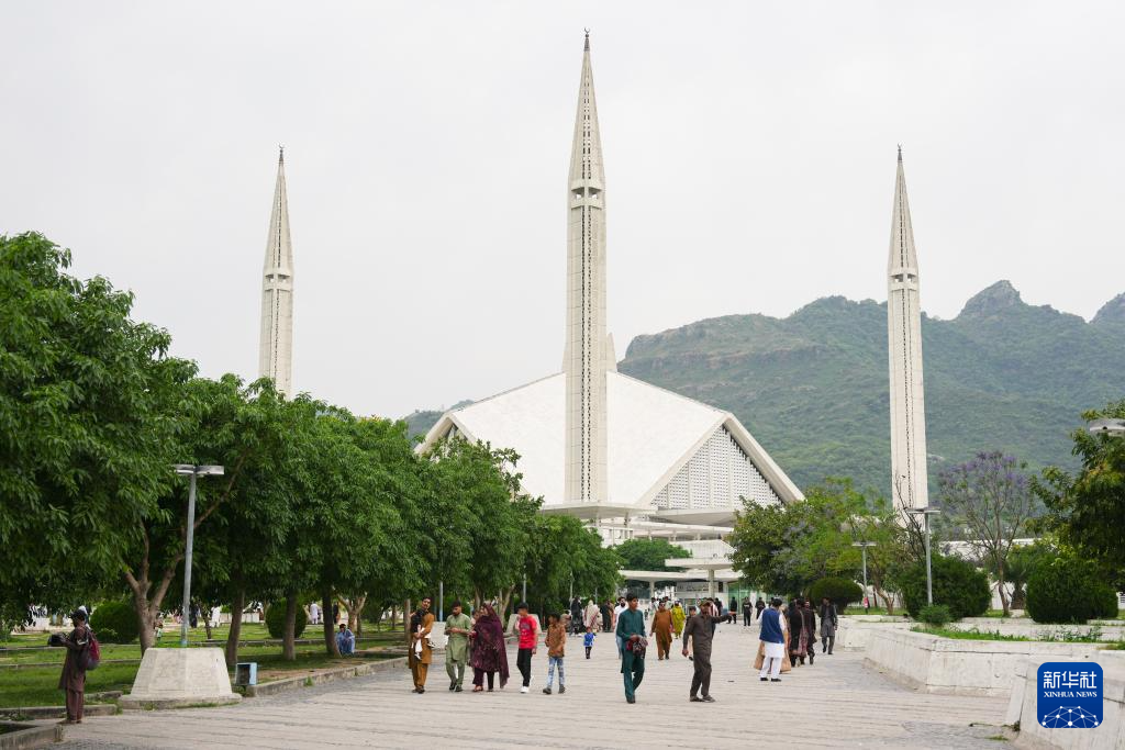 这是4月16日在巴基斯坦首都伊斯兰堡拍摄的地标建筑费萨尔清真寺。