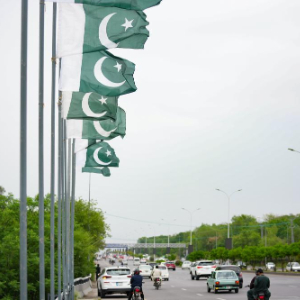 4月17日,在巴基斯坦首都伊斯兰堡,车辆从路上驶过。
