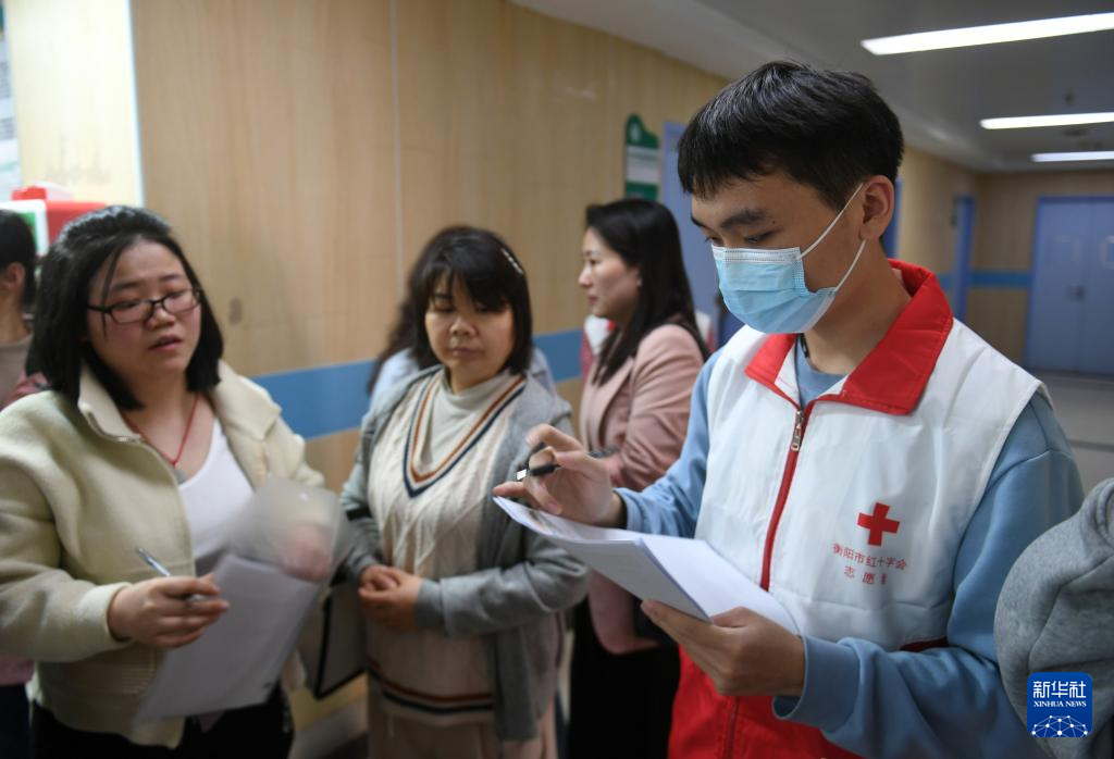 4月16日,在位于衡阳市的南华大学附属第二医院,红十字会志愿者登记患儿信息。