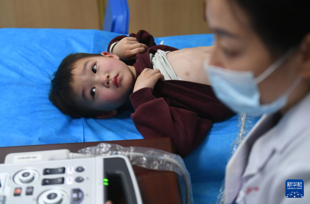 4月16日,在位于衡阳市的南华大学附属第二医院,一名小朋友在接受检查。
