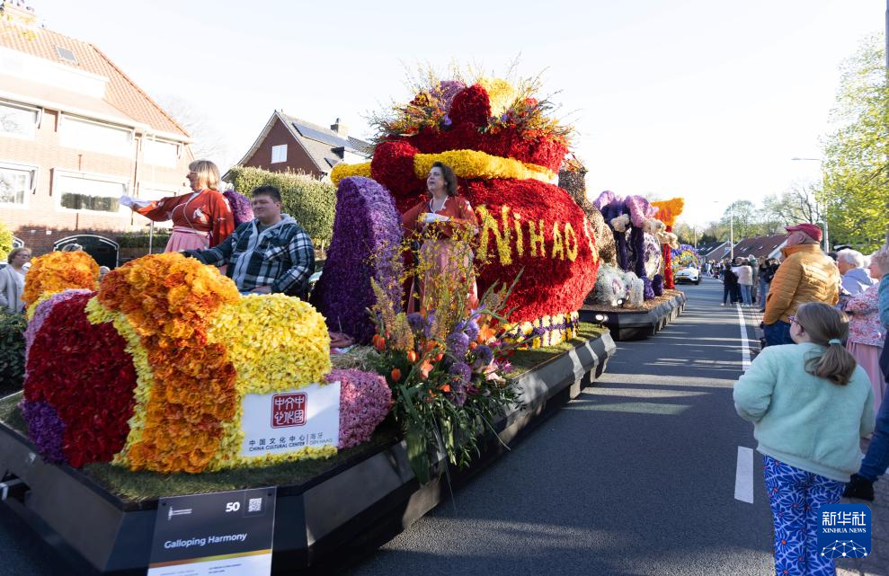 一年一度的荷兰春季花车巡游活动4月18日在荷兰西部地区举行,中国主题花车在此次活动中亮相。