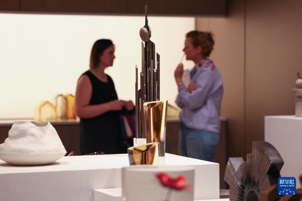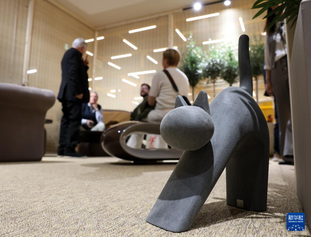 4月21日,在意大利米兰国际会展中心,参观者在米兰家具展上观看展品。