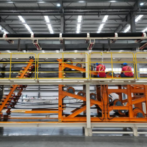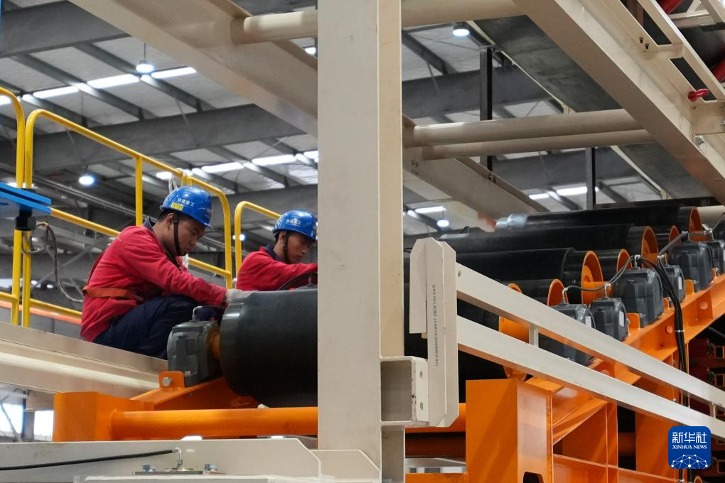 4月21日,在铁建重工长沙第三产业园,工人在调试连续皮带机。