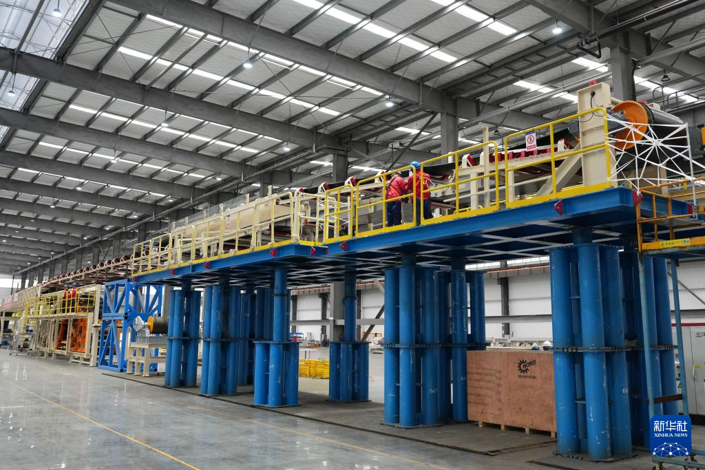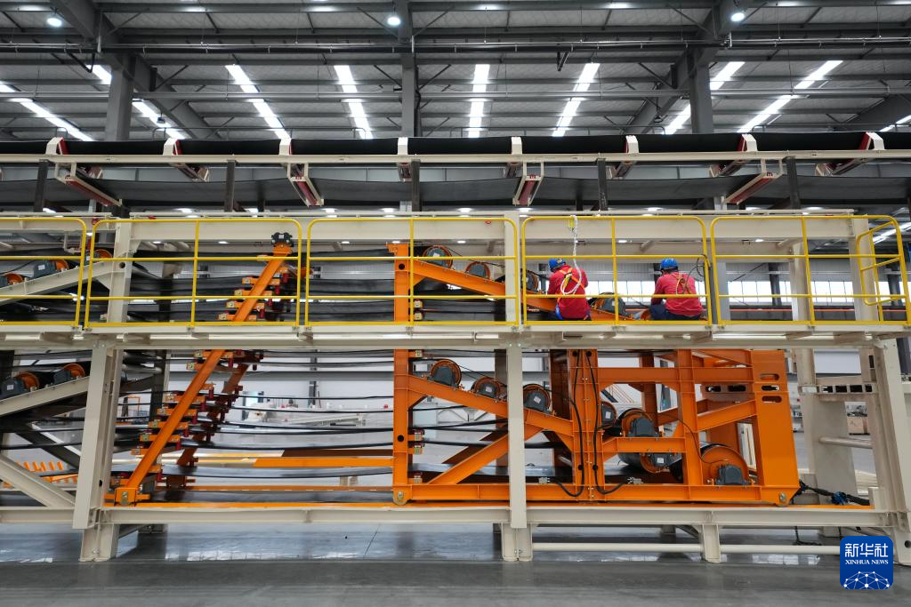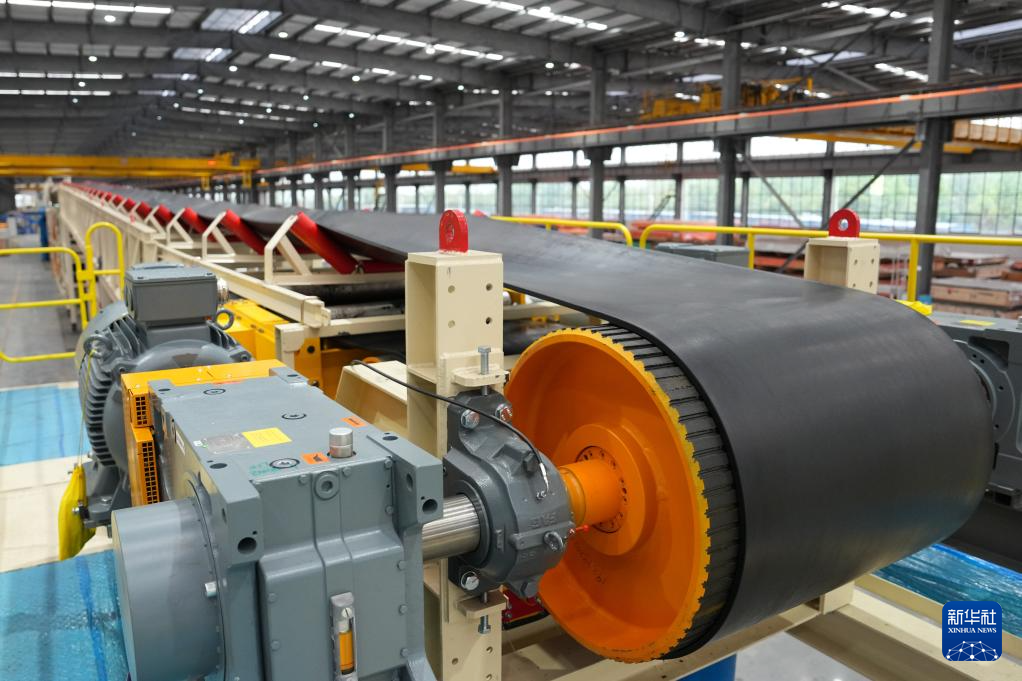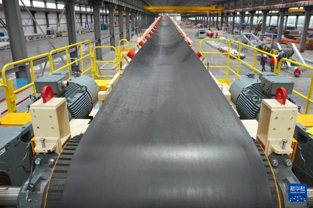 这是4月21日在铁建重工长沙第三产业园拍摄的连续皮带机。