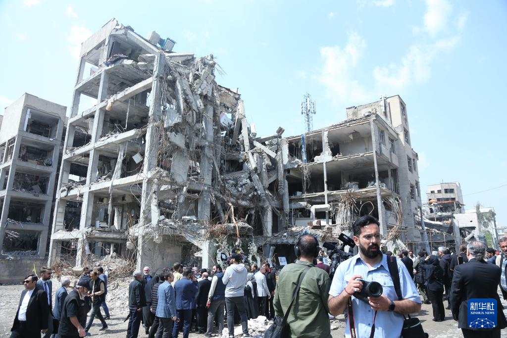 4月20日,在伊朗首都德黑兰,驻伊朗使节和外国媒体查看一处在美以袭击中被损毁的居民区建筑。