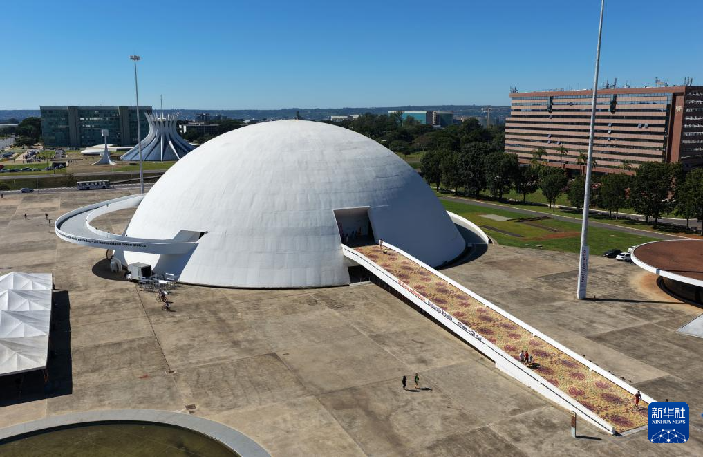 这是4月19日在巴西首都巴西利亚拍摄的国家博物馆(无人机照片)。