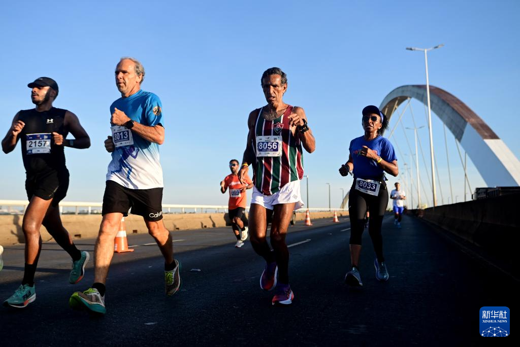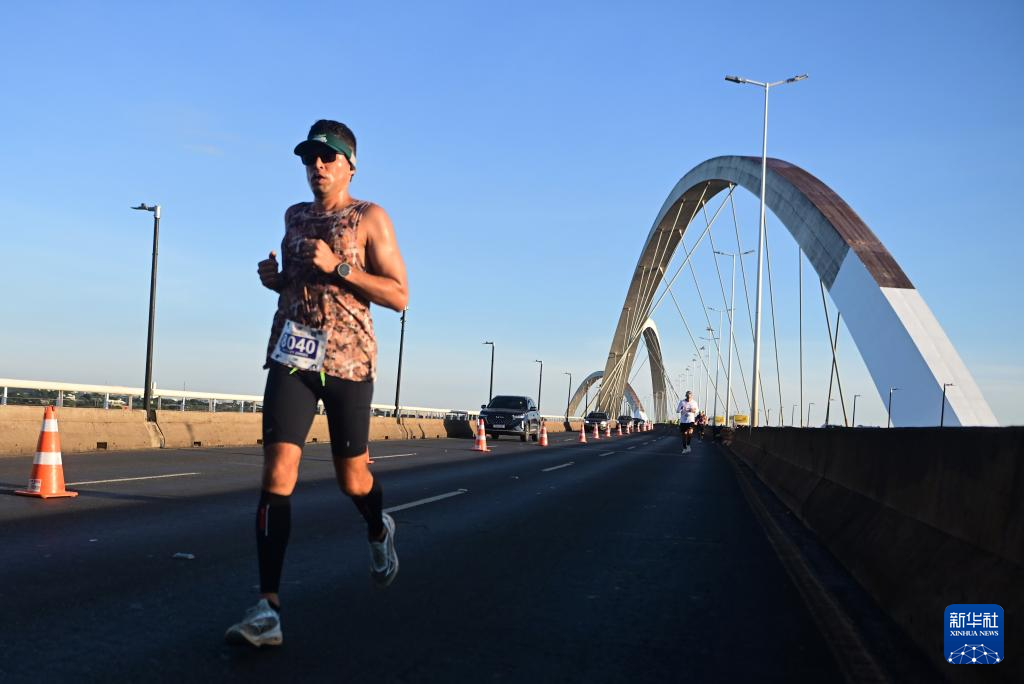 4月20日,在巴西首都巴西利亚,运动员参加庆祝巴西迁都巴西利亚66周年马拉松比赛。