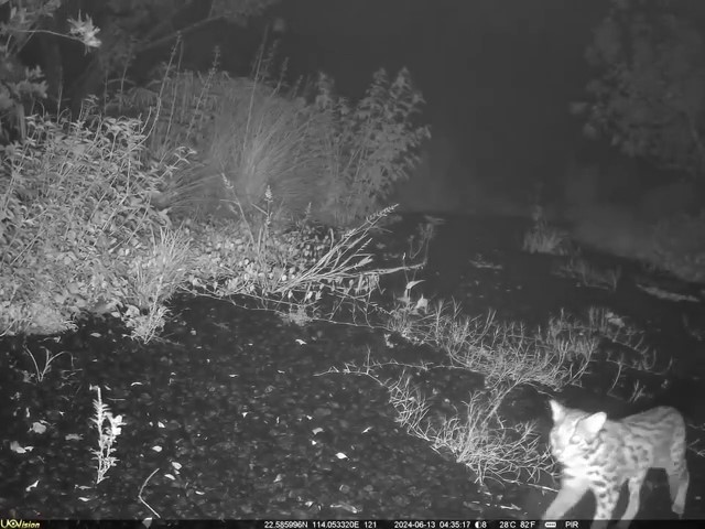 这是深圳鲲鹏径一号桥上的红外相机拍摄的豹猫穿过廊桥的画面(资料照片,视频截图)。