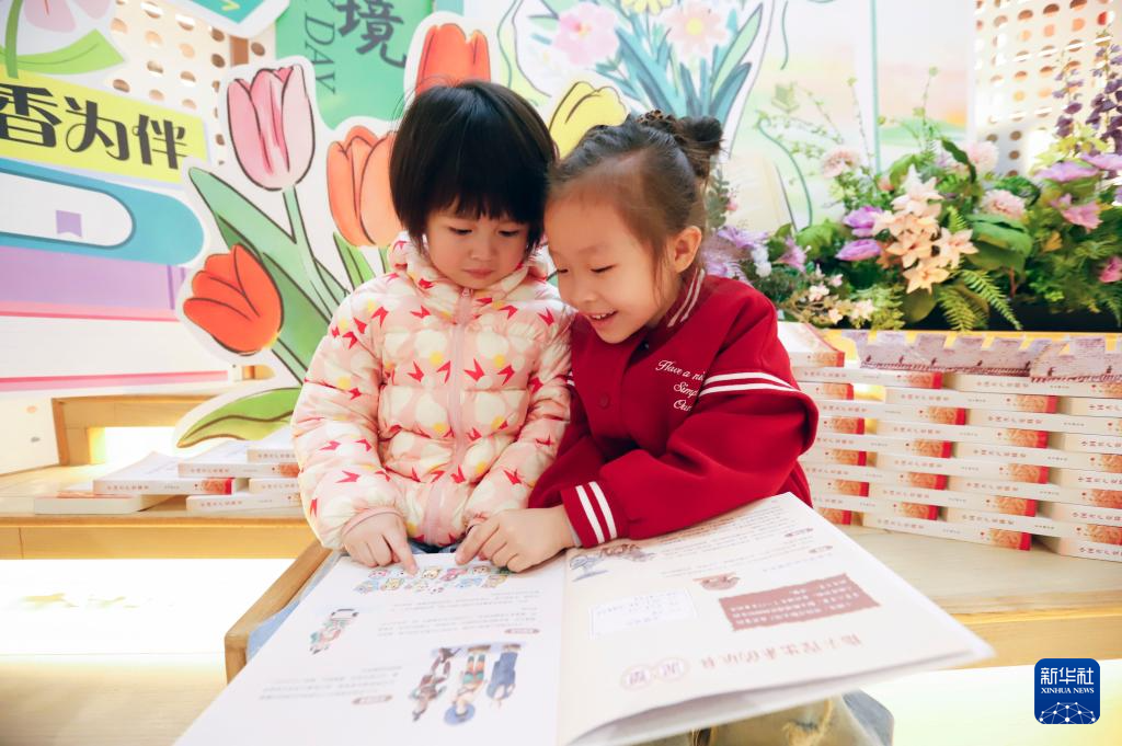 4月23日,小朋友在河北省遵化市新华书店阅读书籍。