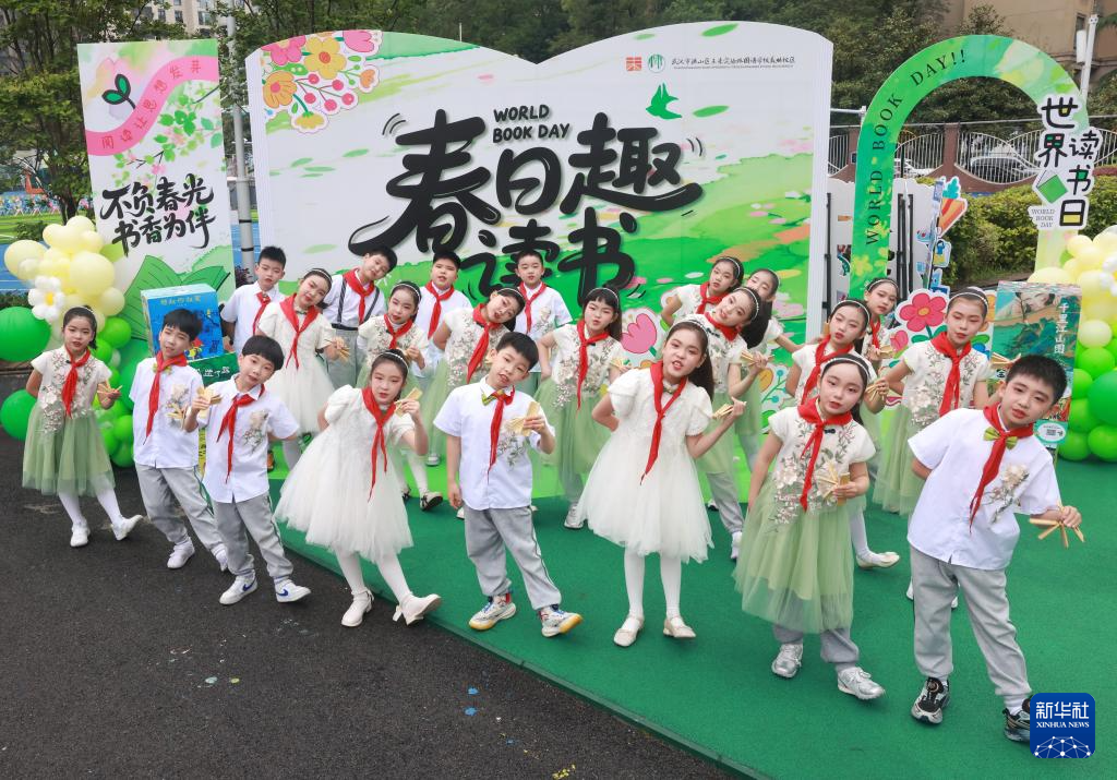 4月23日,湖北省武汉市未来实验小学美林校区学生在“书香润童心 经典伴成长”活动中表演《竹板诵书香》节目。