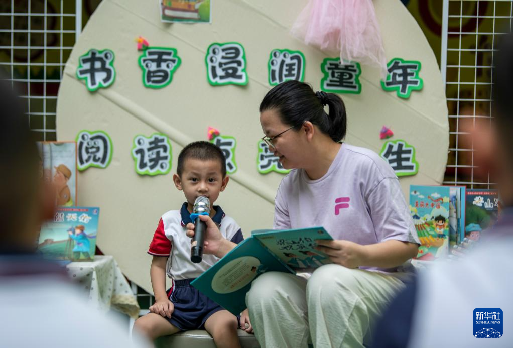 4月23日,贵州省都匀市第一幼儿园的老师给孩子们讲儿童绘本故事。