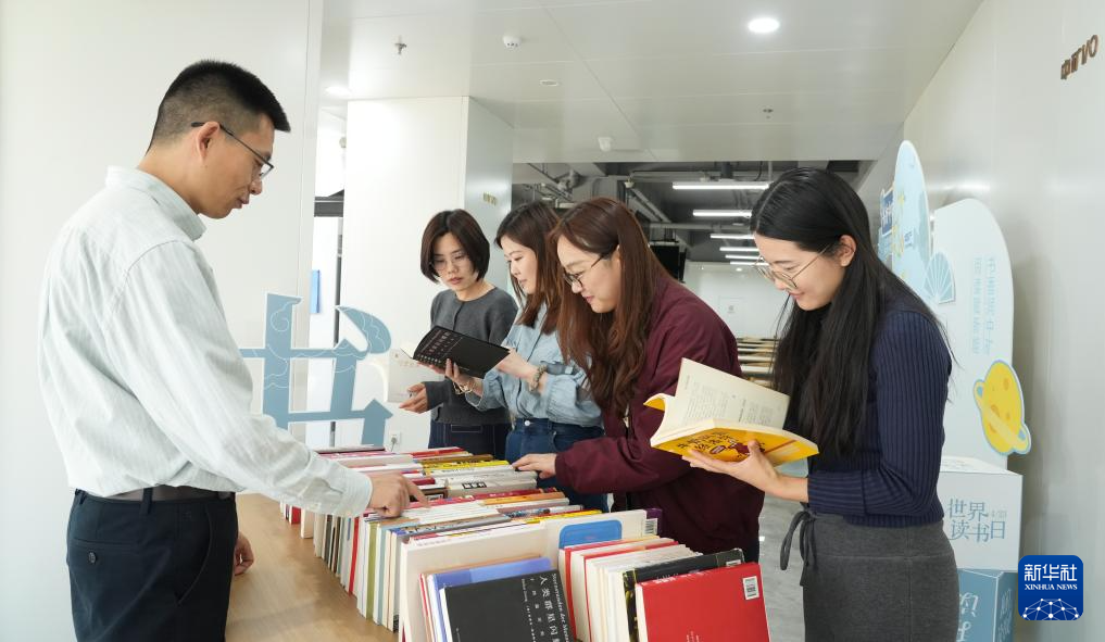 4月23日,在北京举行的中国矿产资源集团“书香润中矿·阅读赋新能”活动上,人们在阅读书籍。