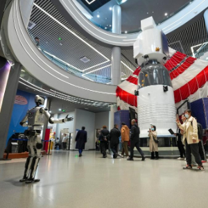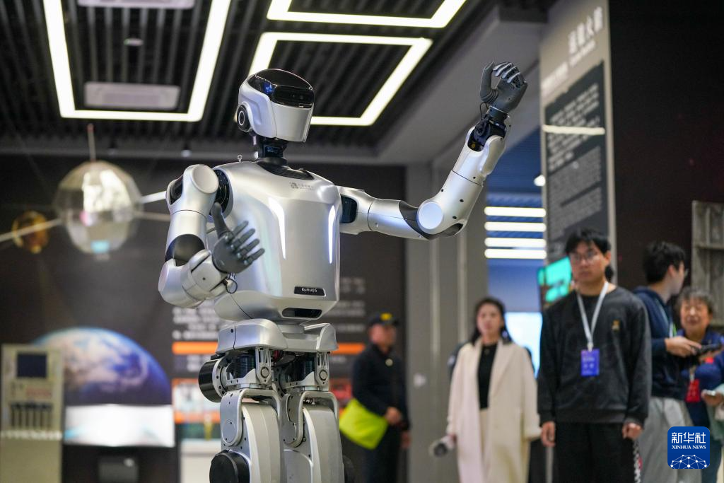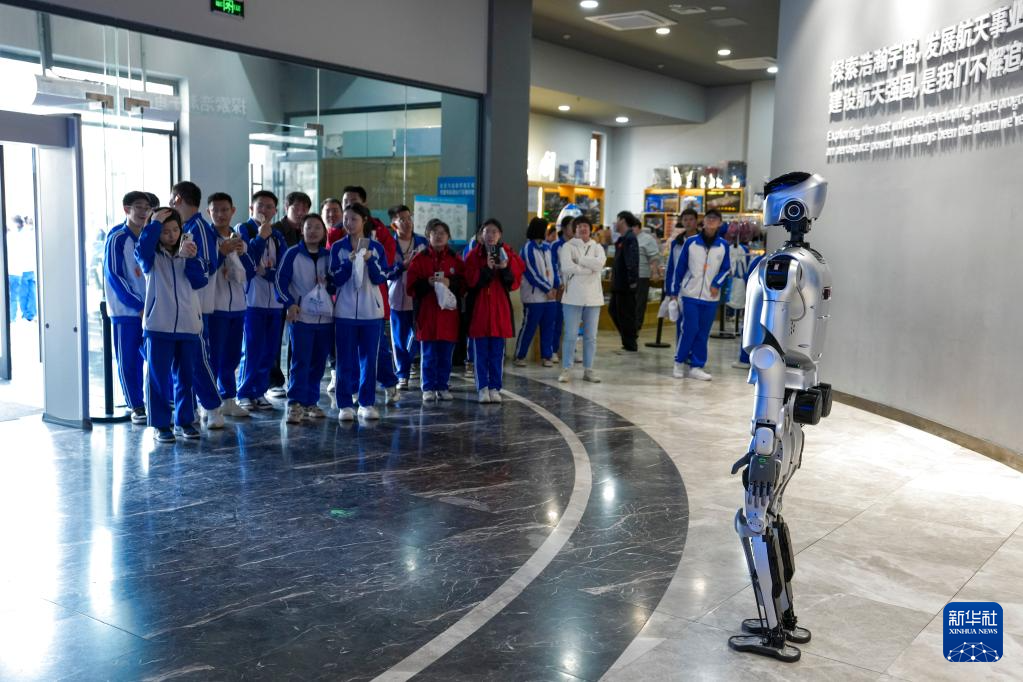 4月24日,一台由哈工大赛尔实验室研发的具有思辨能力的机器人,在哈尔滨工业大学航天馆带领参观人员探访室内展区,体验航天魅力。机器人能引路、能对话、能讲解,还能与观众展开辩论,并在思考后运用肢体语言配合表达进行回应,吸引参观者驻足。