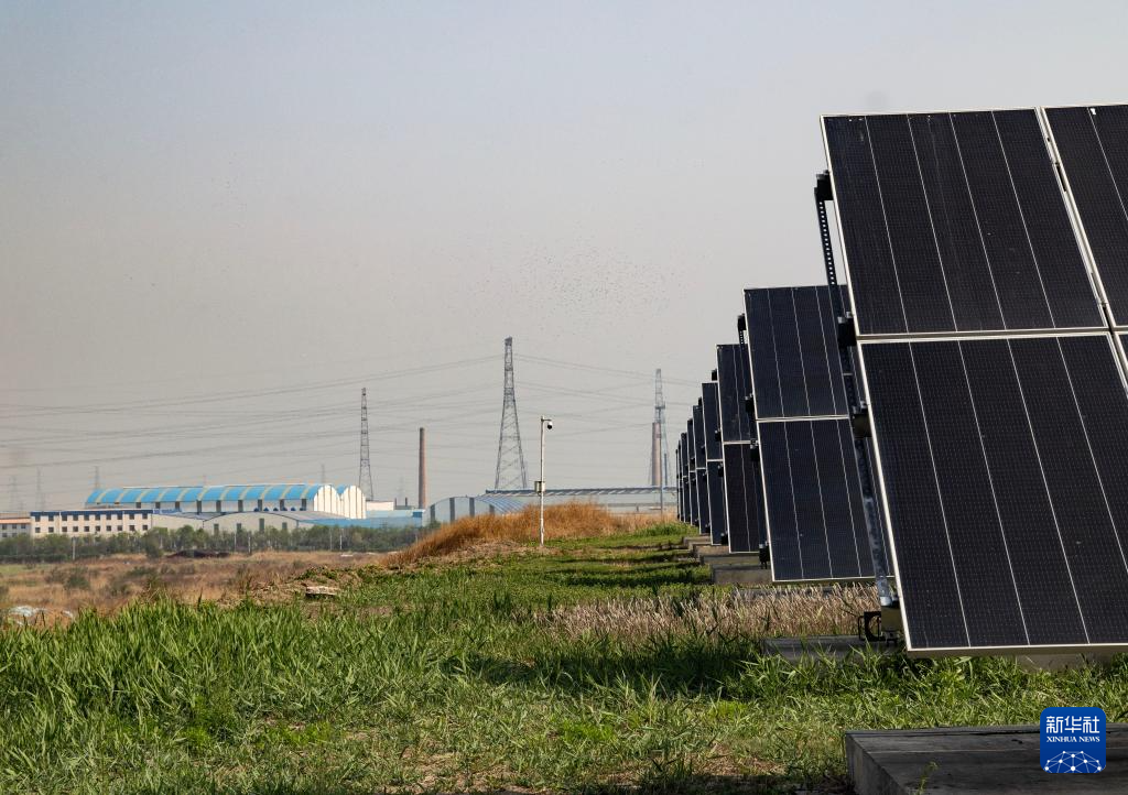 4月23日拍摄的天津滨海新区循环经济产业园内的光伏发电项目。