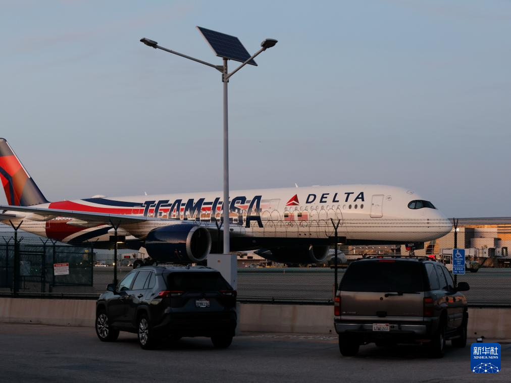 4月24日,在美国洛杉矶国际机场,一架客机在跑道滑行。
