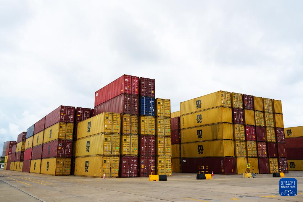 这是4月23日拍摄的斯里兰卡汉班托塔港集装箱堆场。