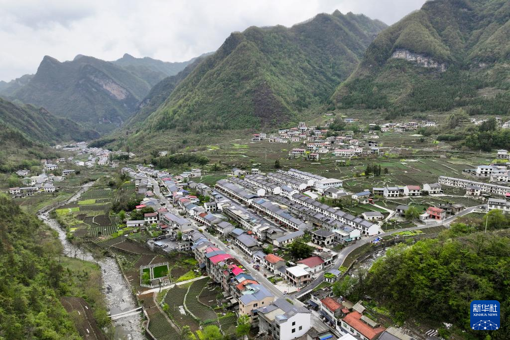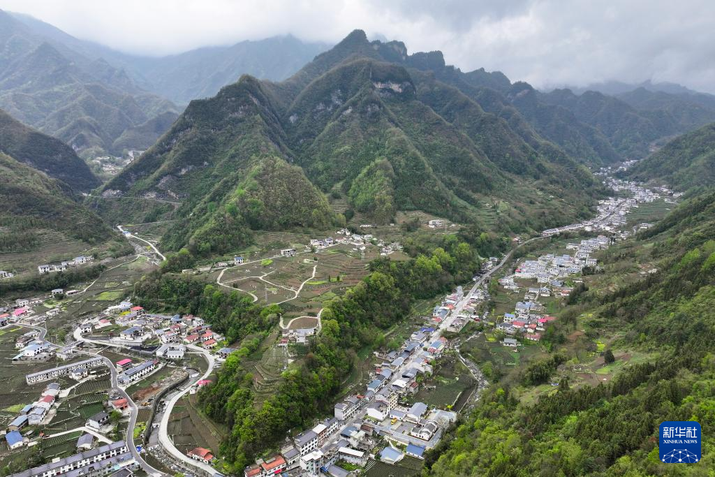 陕西省汉中市宁强县毛坝河镇大竹坝村景色(4月24日摄,无人机照片)。