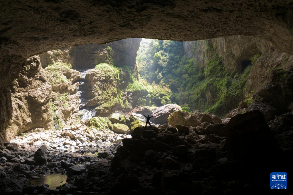 陕西省汉中市宁强县禅家岩镇地洞河天坑景色(4月24日摄,无人机照片)。