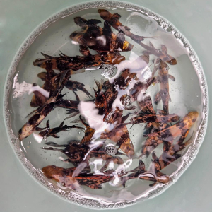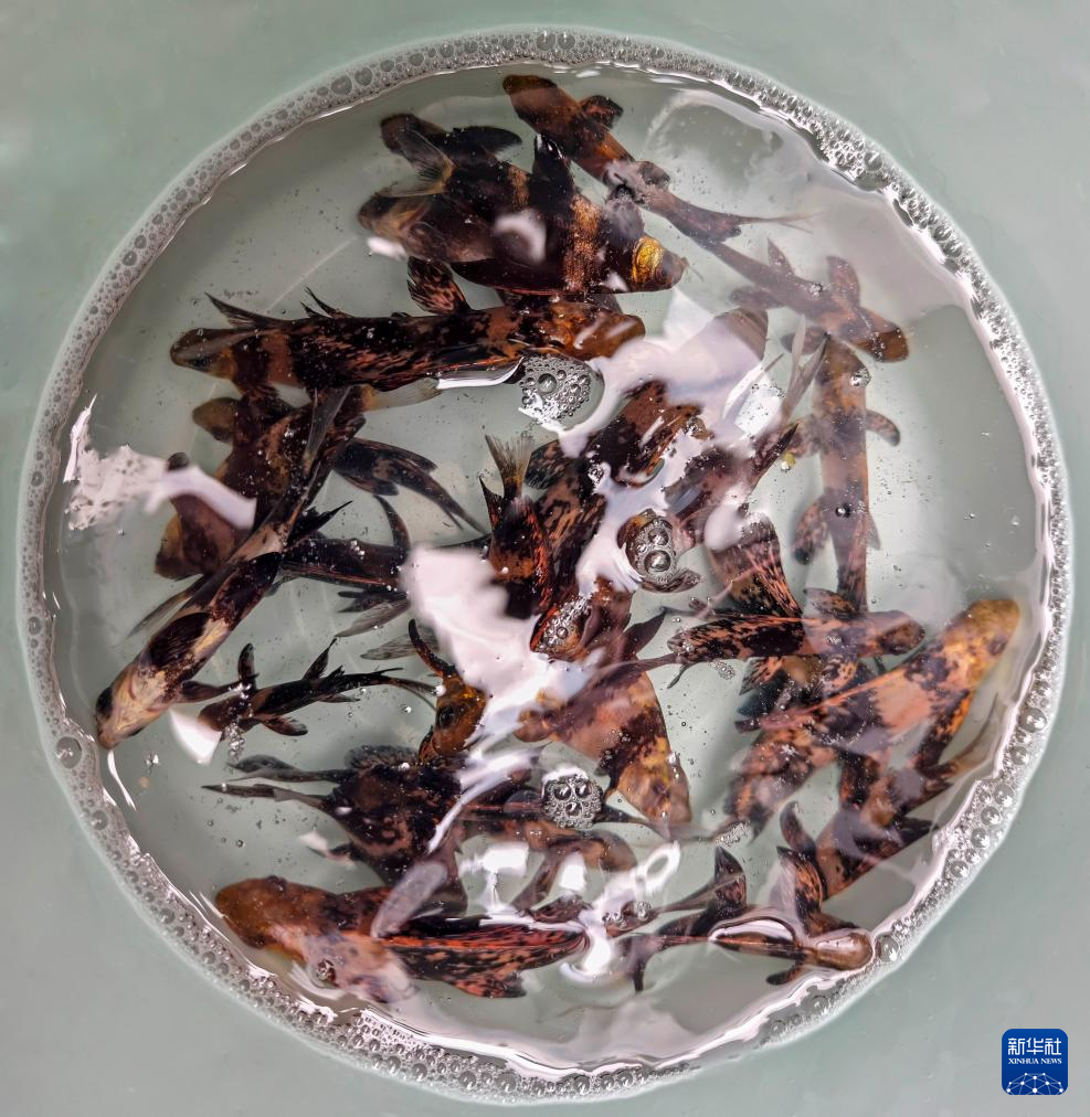 这是准备增殖放流的国家二级保护野生动物胭脂鱼鱼苗(4月25日摄)。