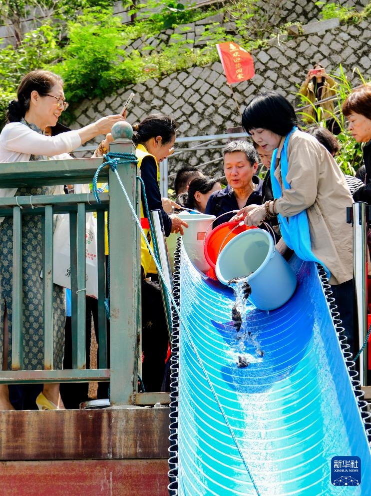 这是在福州市闽侯县白沙镇金钟阁畔举行的增殖放流活动现场(4月25日摄)。
