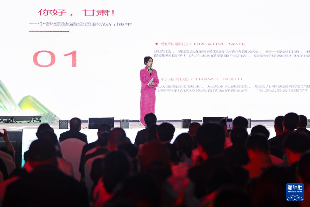 4月25日,在陇南市武都区万象街,文旅达人在启动仪式上分享甘肃文旅体验。