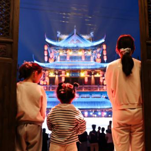 4月25日,在陇南市武都区万象街,小朋友们在观看启动仪式演出。