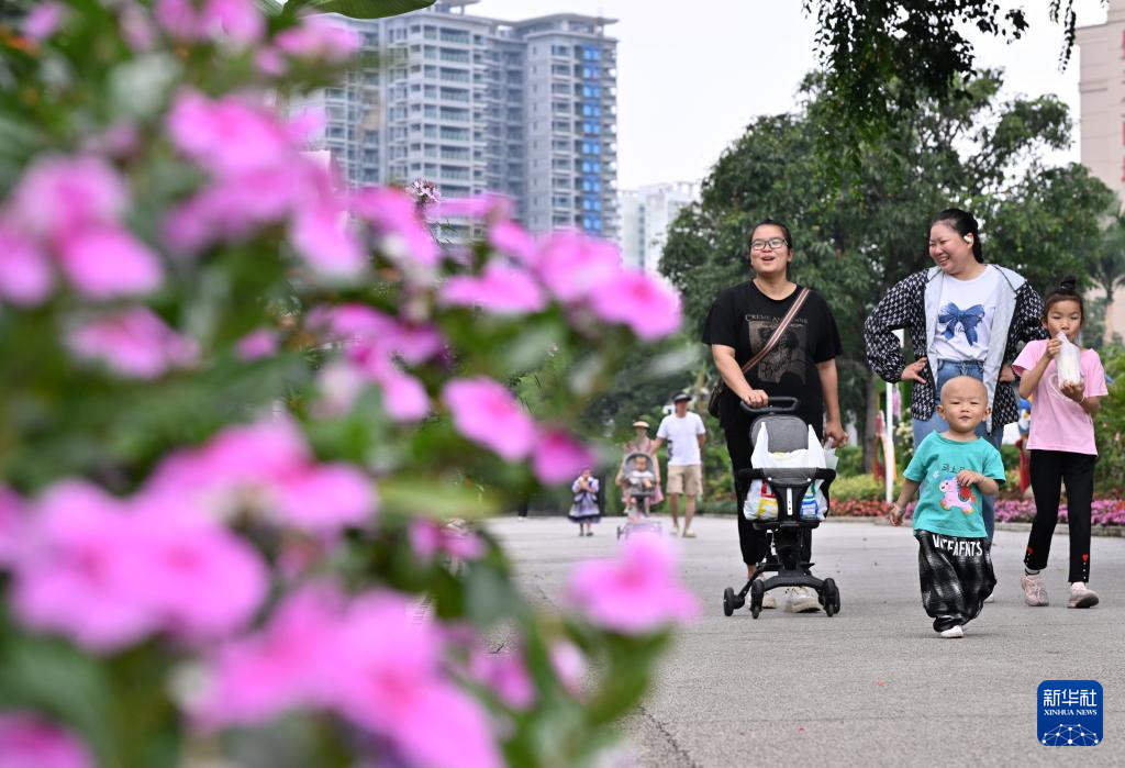 4月26日,人们在广西南宁市花卉公园赏花游玩。